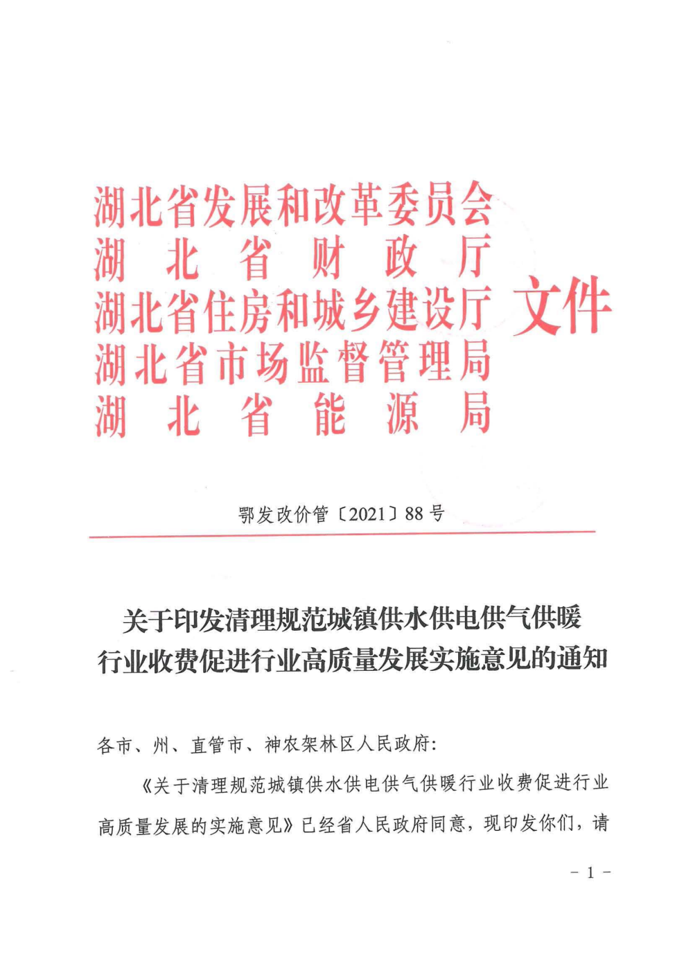 關(guān)于印發(fā)清理規(guī)范城鎮(zhèn)供水供電供氣供暖行業(yè)收費(fèi)促進(jìn)行業(yè)高質(zhì)量發(fā)展實(shí)施意見(jiàn)的通知