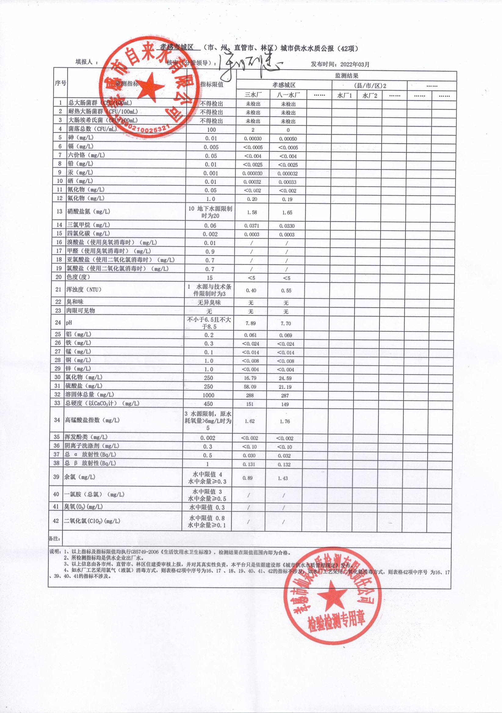 2022年3月水質報告