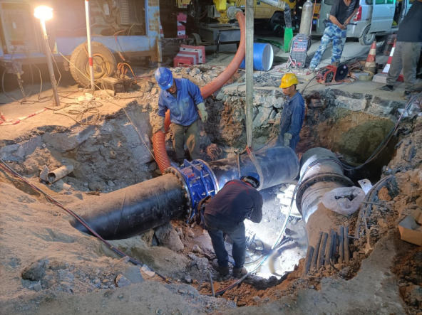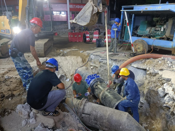 經測算,此次城站路-長征路段改造老舊管網共計773米,采用球墨鑄鐵管DN500口徑管材。由于該路段岔路口較多,南北側共計需安裝16處支管,施工難度大。為確保工程進度,8月19日,我公司工作人員提前進場,倒排工期,抽調人員24小時駐守現場,統籌協調,全力配足人力及機械。同時,科學安排晝夜輪班施工,在保證質量的前提下快速推進整體項目進度。