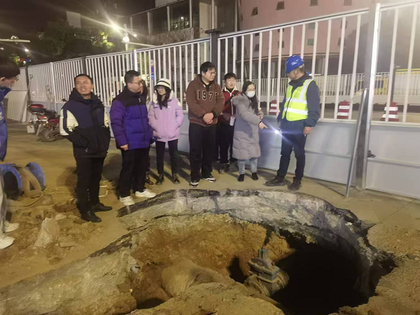 盡管寒風(fēng)凜冽,施工現(xiàn)場卻是一片繁忙景象,燈火輝煌。挖掘機(jī)械設(shè)備緊張作業(yè),工人們有序地進(jìn)行著供水管道連接前的準(zhǔn)備工作。設(shè)計(jì)造價(jià)人員仔細(xì)觀察,詳細(xì)記錄,并不時(shí)向現(xiàn)場施工人員和技術(shù)人員提出問題,深入掌握施工流程和關(guān)鍵技術(shù)。