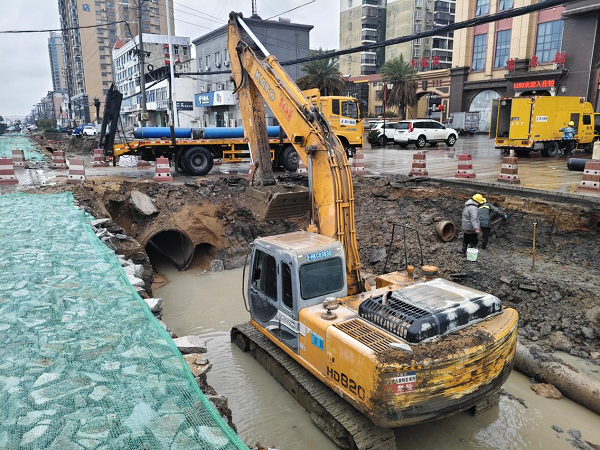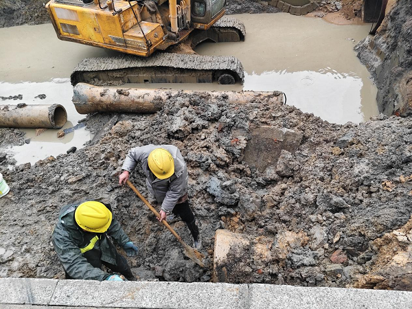 3 月 3 日下午三點二十五分,公司接到市民反映,孝武大道久尊酒店門口出現(xiàn)管網(wǎng)漏水情況。經(jīng)調(diào)查,此次管網(wǎng)漏水,是由于道路施工開挖作業(yè)中存在違規(guī)操作。施工方致使供水管網(wǎng)暴露在外,卻未進(jìn)行任何加固處理。作業(yè)坑道在大雨的持續(xù)沖刷下發(fā)生了滑坡現(xiàn)象。最終,在滑坡產(chǎn)生的強(qiáng)大外力作用下,該地段兩根DN400水泥管脫頭,進(jìn)而引發(fā)了管網(wǎng)漏水問題。