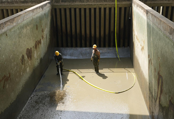 平流池作為水處理核心設(shè)施,長期截留原水中的泥沙、藻類及重金屬顆粒。若未定期清理沉積物可能滋生微生物,甚至釋放二次污染物,池底淤積也會改變設(shè)計水流形態(tài),影響絮凝體沉降效率。此次清洗工作可恢復(fù)池體過水?dāng)嗝妫粌H能有效預(yù)防二次污染、減輕濾池負(fù)荷,還可降低水處理藥劑成本,助力水處理工藝穩(wěn)定運行,保障優(yōu)質(zhì)的出廠水水質(zhì)。