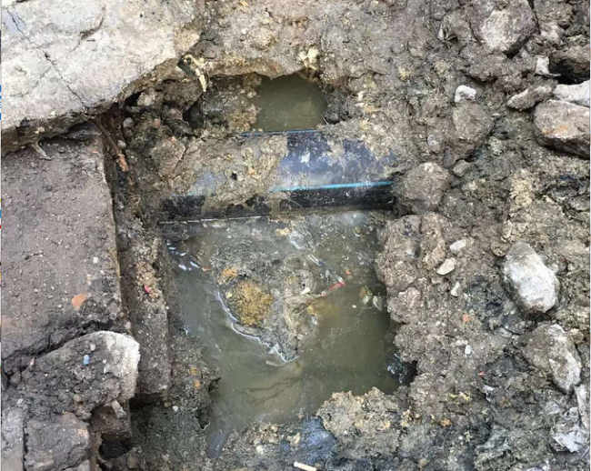 3月27日7點45分,北京二路一位居民致電公司供水熱線,稱其住宅樓下水道堵塞,系自來水進水管道橫穿所致,現已嚴重影響居民生活,要求派人解決。群眾事無小事,熱線迅速下發(fā)了工單;8點,維修中心工作人員就趕到了事發(fā)地點。