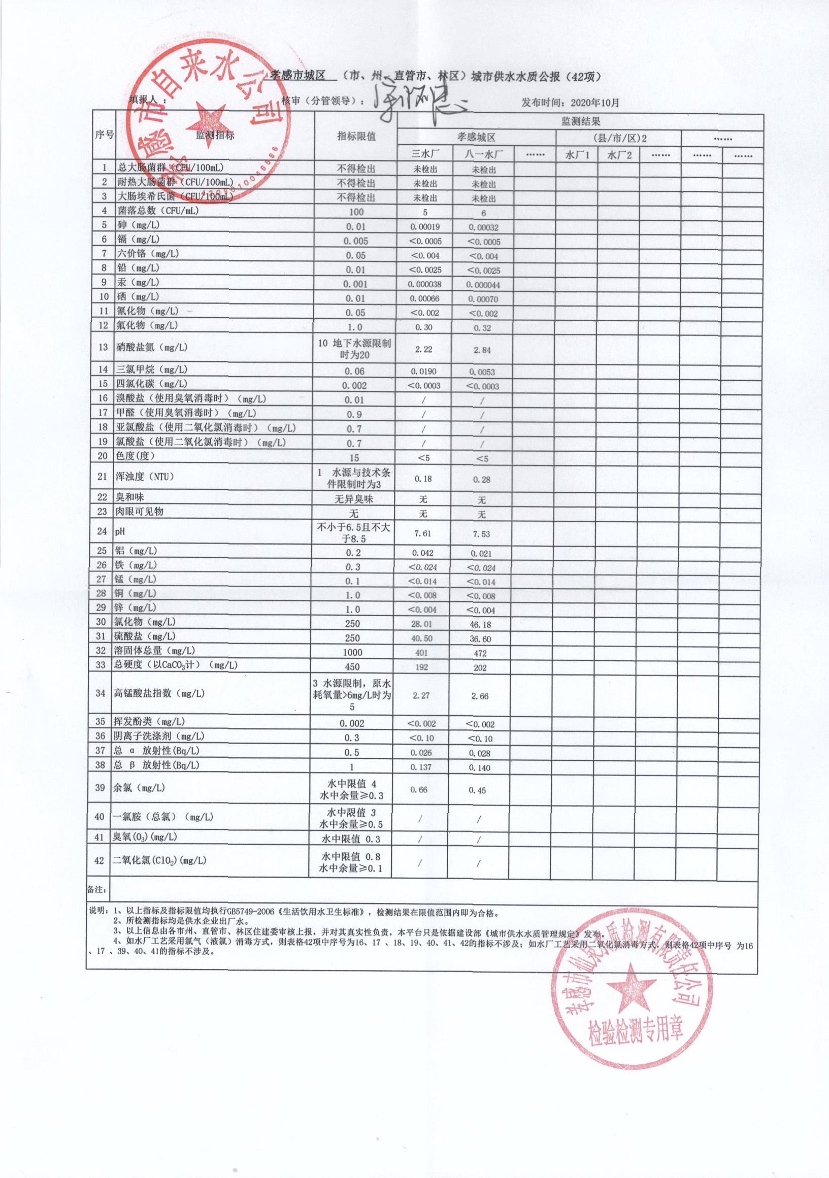 2020年10月水質報告